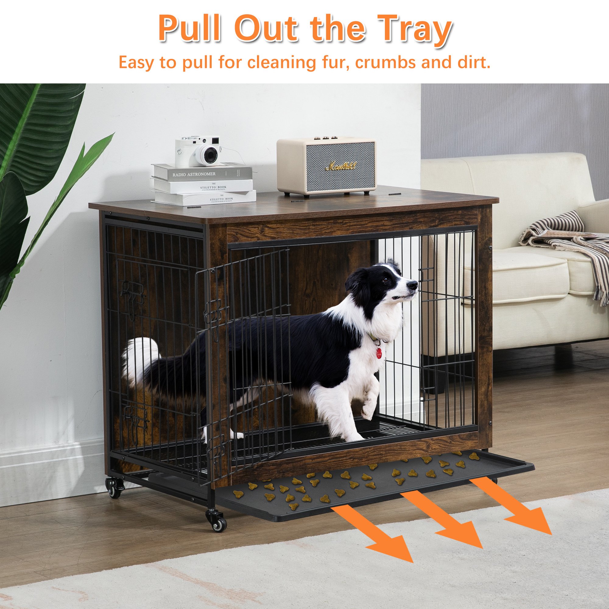 Dimension38.3"L x 23.4"W x 32"HColorVintageProduct Weight64LbsMaterialMDF . Iron WirePackage Includes1 x dog crate . 1 x Instruction