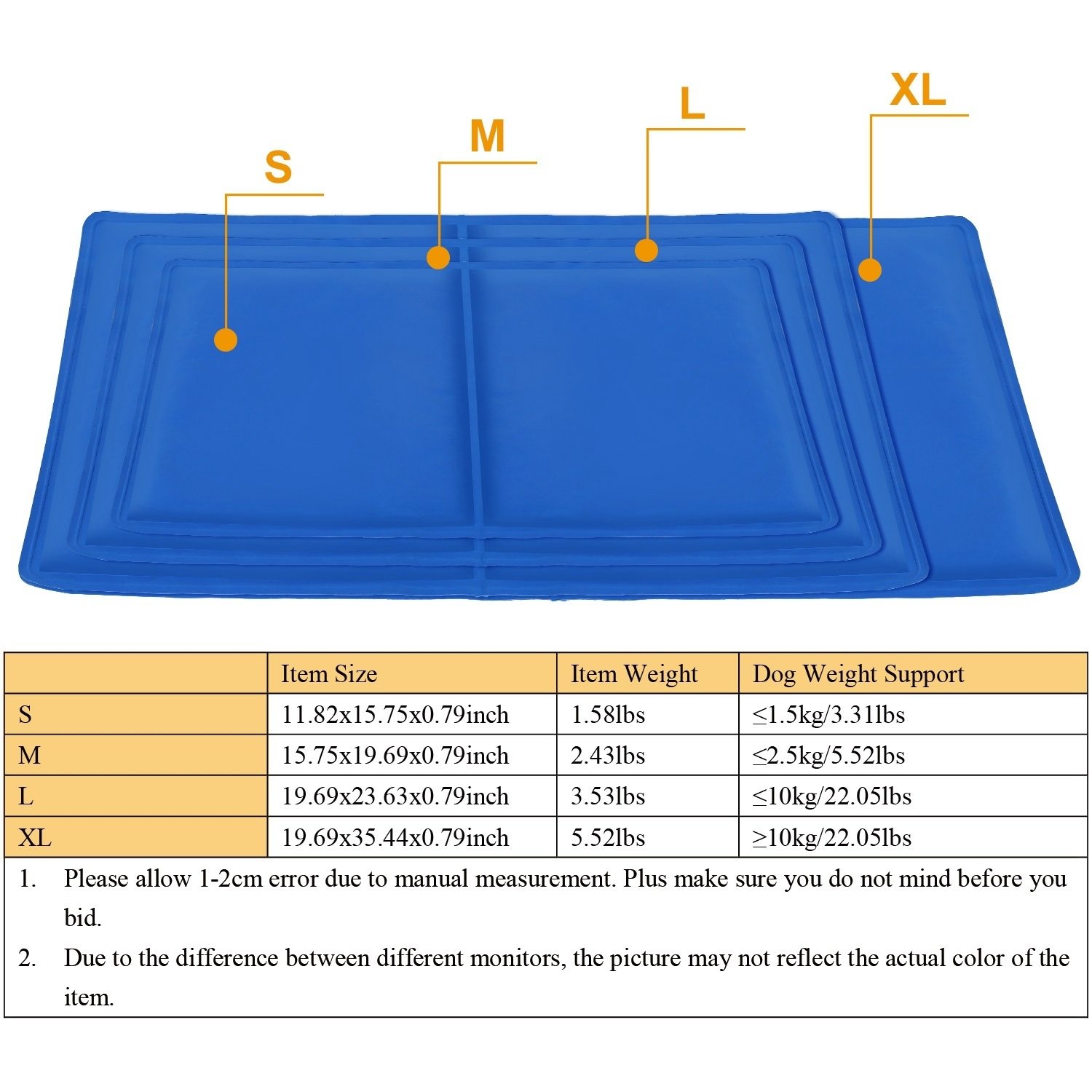 **S/M/L/XL 4 SIZES FOR OPTIONAL*:Considering different figure of your dogs and cats; there are 4 sizes pet cooling mat for optional. You can choose the most suitable one for your pets according to its shape.