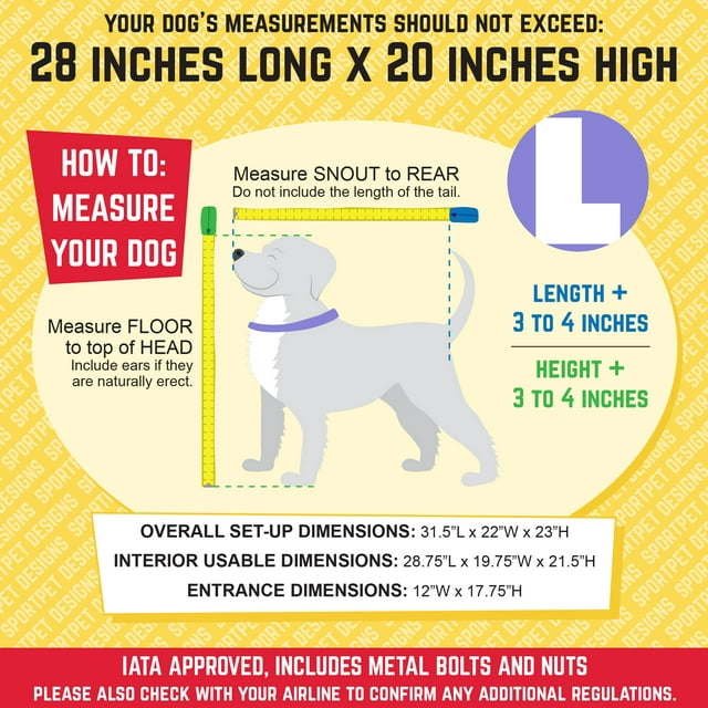 2.Your dog’s measurements should be under 29” L x 20” H for the Large kennel