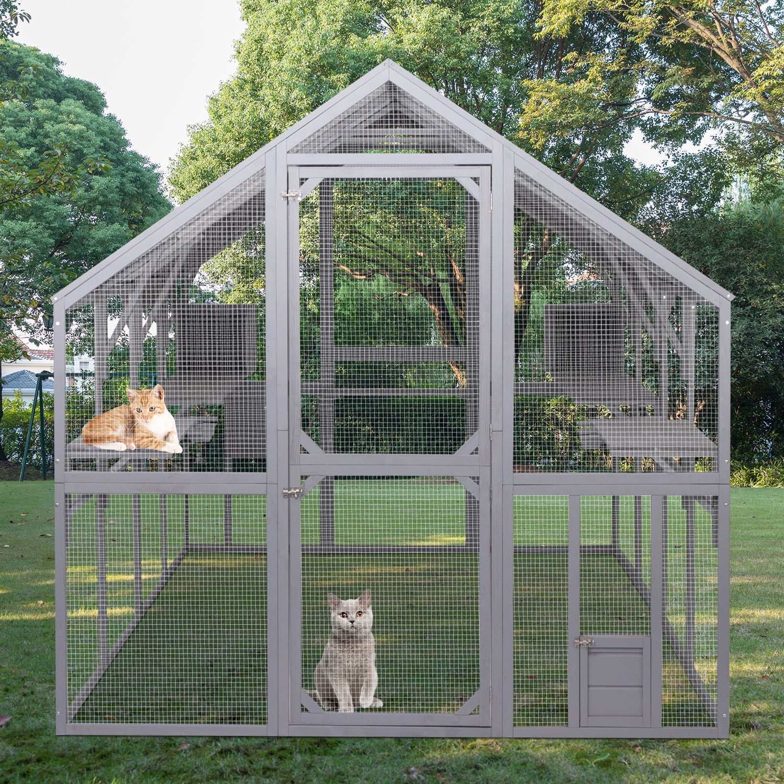 [Easy to Interact With Your Furry Friends] Not only 100% sense of security but also 100% satisfaction of happiness for our furry friends. Fully open enter door at 59.5"" tall allows you to go inside more effective to establish the interaction with your furry friends.It's also convinient to make feeding and cleaning easily. Two lift small doors are convenient for cats to enter and exit.Those still can be connected to pet tunnel which can reate more positive confidence and interesting for it in